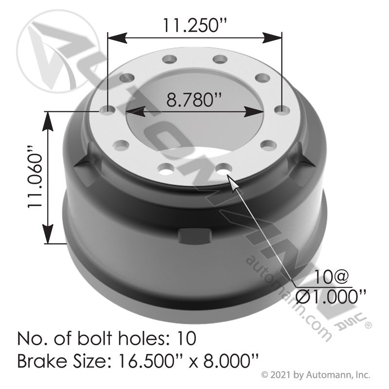 TAMBOR POSTERIOR DE DISCO DE PARA EJES DE PLATAFORMAS REDONDOS Y CUADRADOS TIPO DISCO, ZAPATA DE 8"